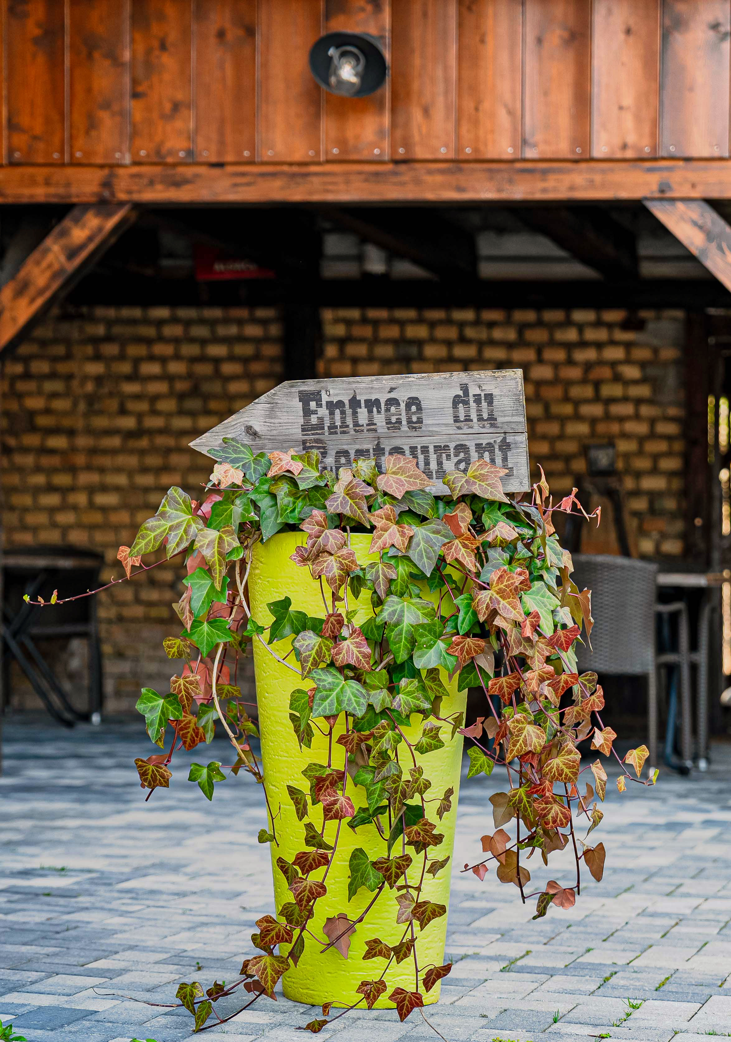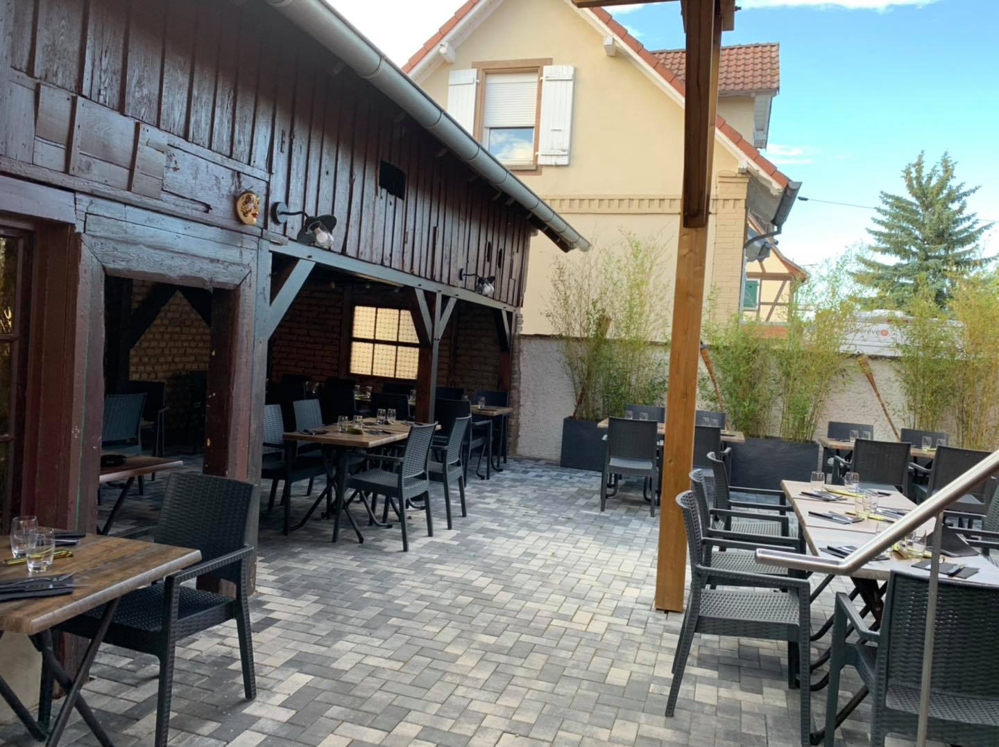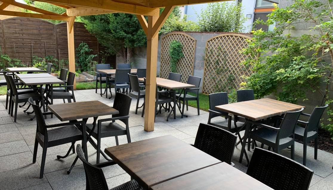 Ou préférez le charme bucolique du jardin, à l’arrière du restaurant, avec vue directe sur nos 3 poules Mozza, Carbo, Bolo et Pompon, notre lapin star 🐔🐇.